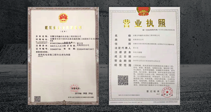 营业执照经营范围齐全,拥有机电安装三级专业承包资质,AAA信用证书!